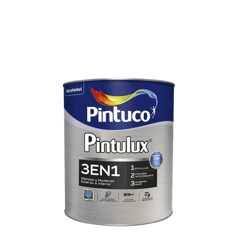 Pintulux 3 en 1 Brillante es un esmalte alquídico que evita lijar en superficies con oxidación leve, contiene anticorrosivo y da un hermoso acabado brillante. Diseñado para aplicar directo al metal con una excelente adherencia, durable y resistente a la corrosión. Prepara, protege y decora en un solo paso. Producto formulado sin plomo ni cromo.