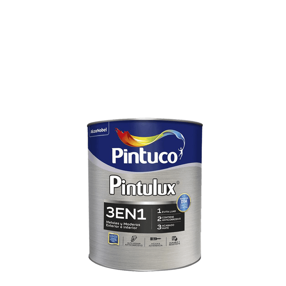 Pintulux 3 en 1 Brillante es un esmalte alquídico que evita lijar en superficies con oxidación leve, contiene anticorrosivo y da un hermoso acabado brillante. Diseñado para aplicar directo al metal con una excelente adherencia, durable y resistente a la corrosión. Prepara, protege y decora en un solo paso. Producto formulado sin plomo ni cromo.