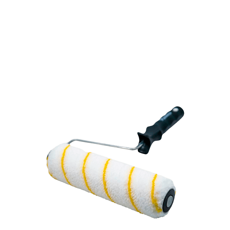 Rodillo antigota de 9” con felpa recambiable de 10 mm, ideal para pintar superficies lisas y semi lisas sin salpique, logrando acabados limpios.